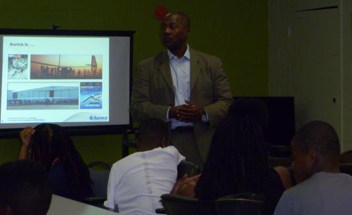 introduction to Unmanned Air Vehicles – aircraft with very long wings flying over the desert for as long as 5 days without a pilot. Cherry engaged the attendees using videos of various advanced UAVs and other aerospace vehicles developed by Aurora. He also discussed how UAVs could be used to deliver goods and